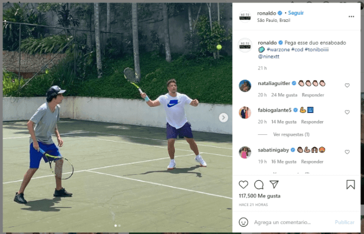 At his 44 years, Ronaldo is not in his best physical form, which prohibits him to practice soccer normally or some other sports he would like to. Recently, he uploaded a photo to Instagram in which he appeared playing tennis with some friends. The legend seems to spend his free time now with this sport.