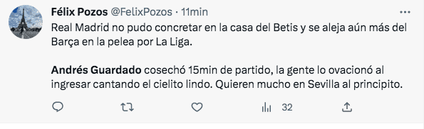 Andrés Guardado entered at minute 79 in the game against Real Madrid. The Betis fans sang the song "Cielito Lindo" when they saw the Mexican enter, they also applauded him. This shows that he is an idol in this team. The midfielder had a great performance against one of the best teams in the world.