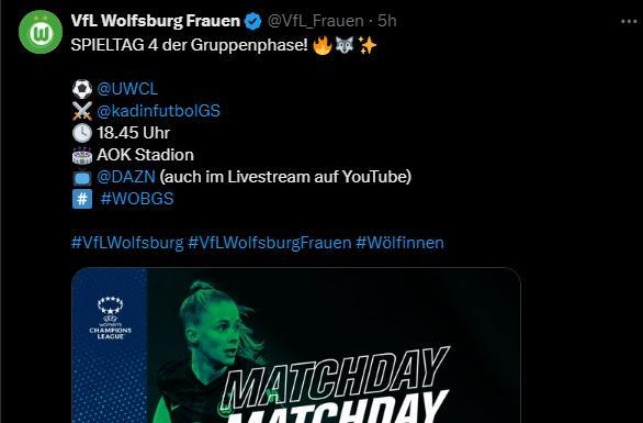 The Wolfsburg Women vs Galatasaray Women match will be available on DAZN starting at 12:45 ET / 9:45 PT. The German team will host the Turkish side at the Volkswagen Arena in their second match of the Women’s Champions League group stage. Learn all the details about the match: team form, possible lineups, and predictions.