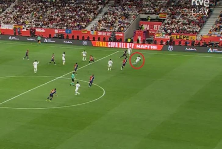 Barcelona is spared due to the Brazilian's offside position. Iñigo Martínez had overwhelmed the Real Madrid player in his one-on-one attempt.