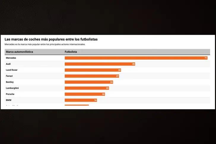 The study also highlights which vehicle brands are preferred by soccer players, and the one that takes first place is Mercedes Benz: "The study makes it clear that Mercedes is the most popular car brand, and by far, among the best international players of recent times. Of the 305 players analyzed, 71 drive cars from said firm. The favorite models are the G class G63 AMG and the C63 AMG," said page.
