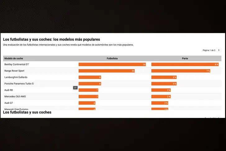 As for vehicle models, the one that tops the list is the Bently, followed by the Range Rover and Lamborghini, high-end cars that only people with million-dollar salaries can buy: "The most popular car model is the Bentley Continental GT. A total of 24 footballers drive this model, whose price exceeds 215,000 euros. In addition, 11 of the players who drive a Bentley are English. Another very popular model among footballers is the Land Rover Range Rover Sport; analyzed lead it."