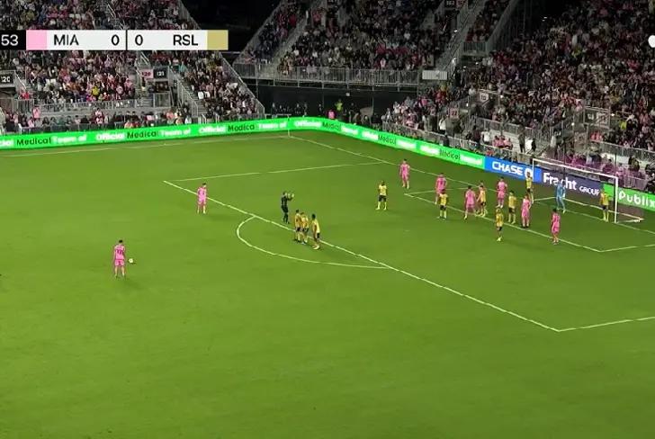 In addition, Robert Taylor's goal in the first half from a pass from Messi, a moment of the game went extremely viral. After 30 minutes played, Lionel Messi received a foul outside the area, which only means one thing, goal alert for Lionel Messi, well, the Argentine is an expert in scoring goals from free kicks, and Real Salt Lake knows it, that's why , they used an unprecedented way of defending!