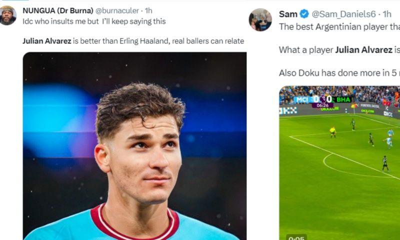 The Argentine striker little by little begins to win the affection of the fans. However, the player is really making a difference and has already scored 3 consecutive games for Pep Guardiola's team. After the goal against Brighton, the fans have expressed themselves on social networks with comments such as that he is the best player on the team and in some cases, that he is even a better striker than Erling Haaland. The reality is that Julian Alvarez is having a great moment and the citizen fans recognize it.