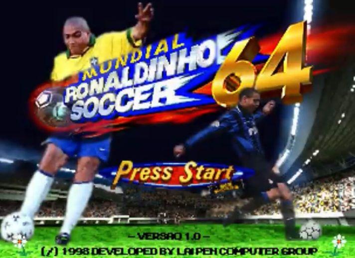 The game intro was altered with pictures of Ronaldo and with its title changed to "Mundial Ronaldinho Soccer 64". Next, a laughing voice announced the name of the game.