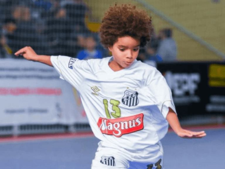 He also plays for Santos FC, as Pele did during the biggest amount of time of his career. Nowadays, he represents the indoor soccer U-9 team from the Brazilian side. He wears the jersey no. 10, prof that he has talent, and is also the captain of the team at his very short age.