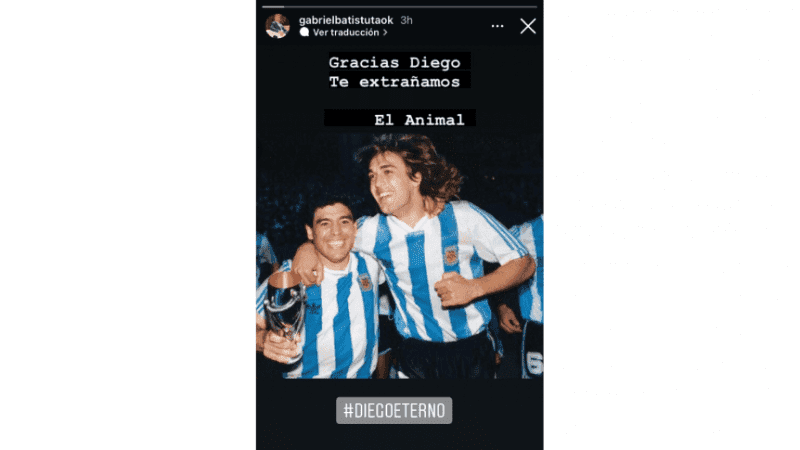 "Thank you Diego. We miss you. The animal," wrote Gabriel Batistuta in an Instagram story, accompanied by a photo of the two with the Albiceleste.