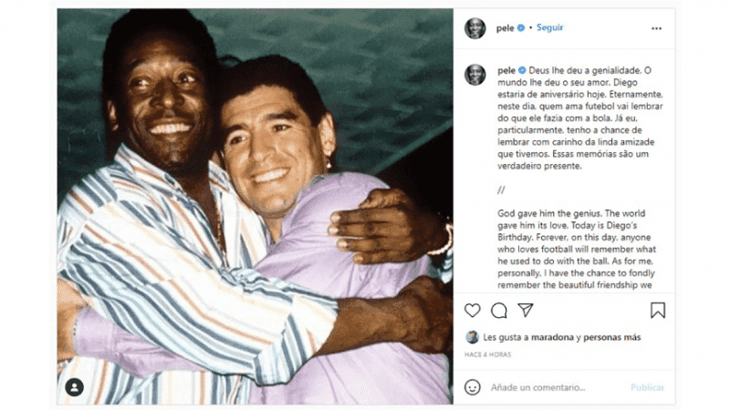 "God gave you genius. The world gave you its love. Forever, on this day, anyone who loves soccer will remember what you used to do with the ball. As for me personally, I have the opportunity to fondly remember the beautiful friendship we had. These memories are a true gift", wrote the Brazilian Pelé on his Instagram account.