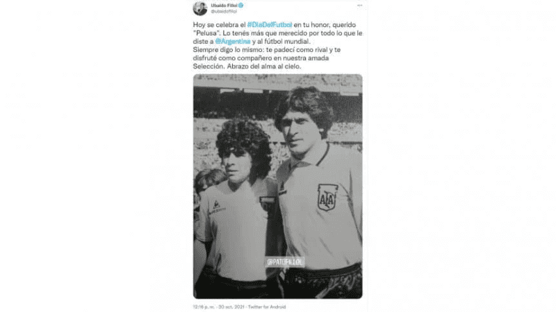 "Today #DiaDelFutbol is celebrated in your honor, dear" Pelusa ". You have it more than deserved for everything you gave to @Argentina and to world football. I always say the same thing: I suffered you as a rival and I enjoyed you as a partner in our beloved Selection. Embrace of the soul to the sky", said Ubaldo Fillol, who was his teammate.