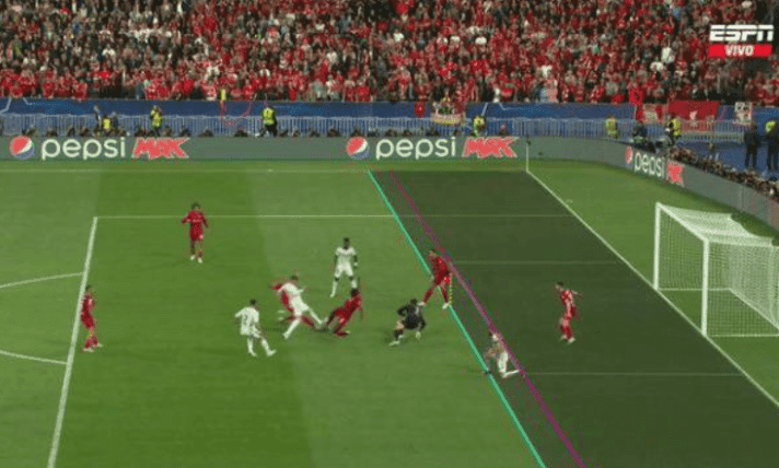 It was at the 42nd minute when the controversial action was triggered, as a live ball in Allison's area bounced and fell into the legs of Karim Benzema, who wasted no time and shot at goal, however, his goal was disallowed, which nipped in the bud the celebration that the Merengues fans had started in the French stadium.