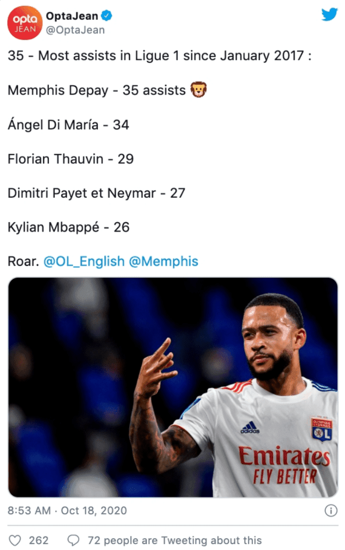 That's just what Koeman's team needs right now. Griezmann is better by his side and Messi, although Koeman's critics are preposterous, isn't going through his best season. They need someone to propel them up. Depay did that at Lyon: he wasn't just the top scorer but also the Ligue 1's player with most assists.