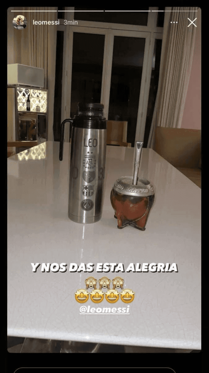 The gift consisted of a thermos with the name "Leo" next to the Argentine National Team and Barcelona crest, the Newell's club that formed it, the PSG and the number 10, and the mate. In the thermos it has the shields of Barcelona, Newell's, the AFA and PSG and in the mate it has the names of Antonela and the three children.