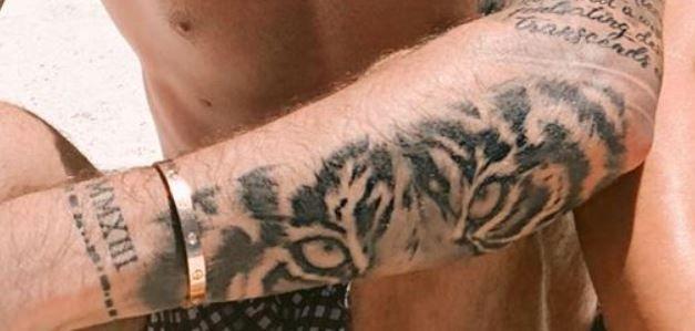 Tattoo: The side of the player’s left forearm contains a tattoo of a tiger’s eyes on it. There is also a date tattooed around his left wrist that is, “XII XIII MMXIII”
