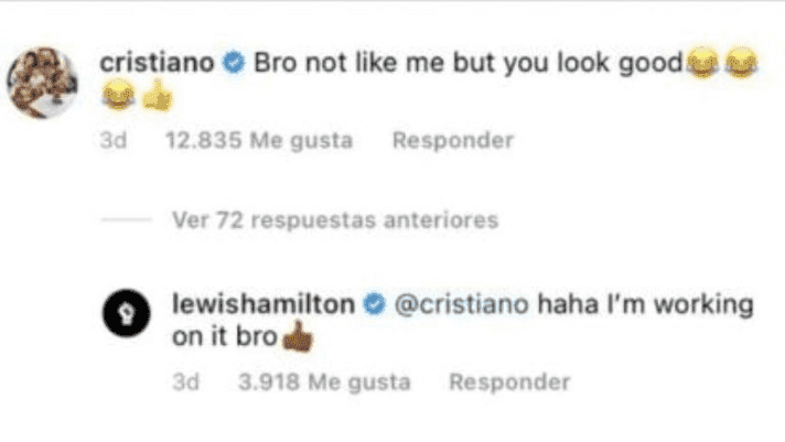 Lewis Hamilton and Cristiano Ronaldo have been friends for a while. In fact, the footballer attended a Formula 1 competition in Monaco, where he was a special guest of the British. On his Instagram account, where he has almost 22 million followers, Hamilton shared with his fans some details of his routine and Cristiano chicaneled it with his physical condition.