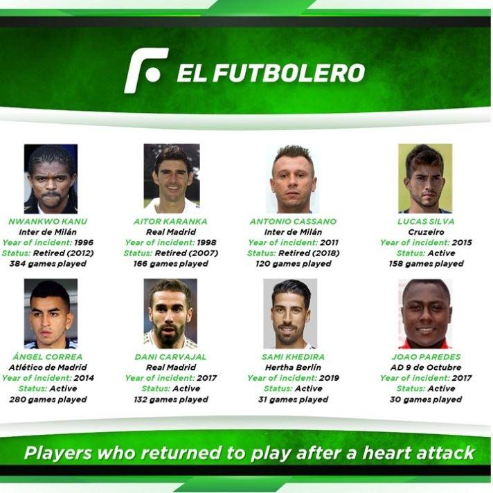 Despite the seriousness of what he suffered, and the doctors having stated in public that he might not play again, from El Futbolero we review the history of other footballers who had heart problems and who played again.