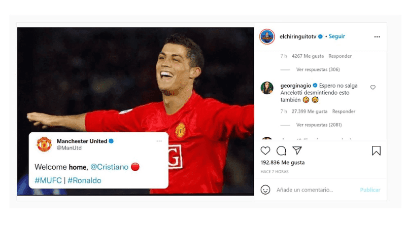 In a publication of a sports media about Cristiano's new destination, Georgina Rodriguez mocked the DT of the Merengue. "I hope Ancelotti doesn't come out denying this too," wrote the Argentine model with an ironic tone.
