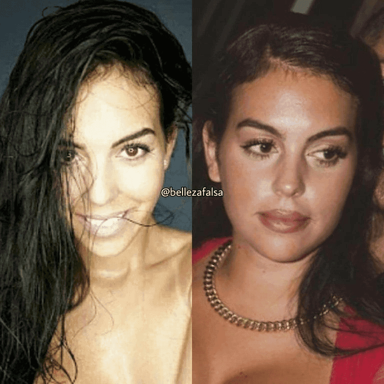 The Juventus star met Georgina many years ago, when she didn’t look like she does today. Her transformation is impressive, but it was not public until an Instagram user (@bellezafalsa) filtered the images of how she was a long time ago, when she wasn’t operated.