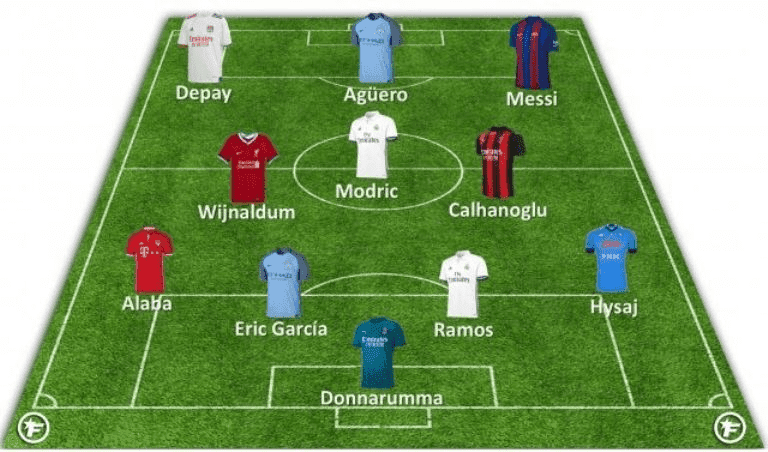 Adding all the top players that will be free agents in less than four months, a hypothetical team integrated by them could line-up with: Gianluigi Donnarumma (AC Milan); Elseid Hysaj (Napoli), Sergio Ramos, Eric García (Manchester City), David Alaba (Bayern Munich); Hakan Calhanoglu (AC Milan), Luka Modric (Real Madrid), Georginio Wijnaldum (Liverpool); Lionel Messi, Sergio Aguero and Memphis Depay (Olympique Lyon).