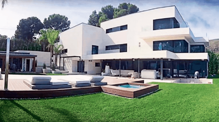This place cost Messi about six million euros and among its main luxuries it has an outdoor pool, jacuzzi, soccer field, playground for his children and a large terrace overlooking the sea, all contained in 3 floors.