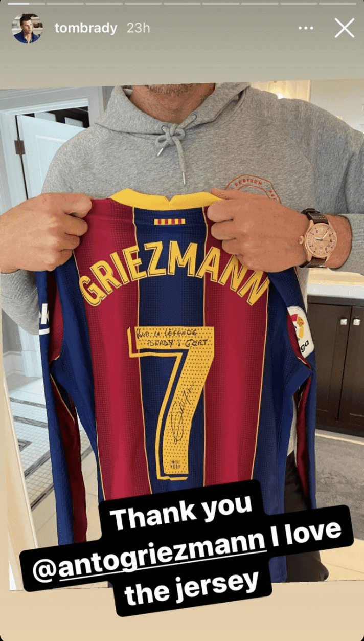 Tom opened the door of his house and received a package. He opened the gift, looked at it, and was surprised. It is that one of the best players that Lionel Messi has as a teammate in Barcelona decided to pay tribute to Brady. What happened? Antoine Griezmann sent him the signed Barça shirt.