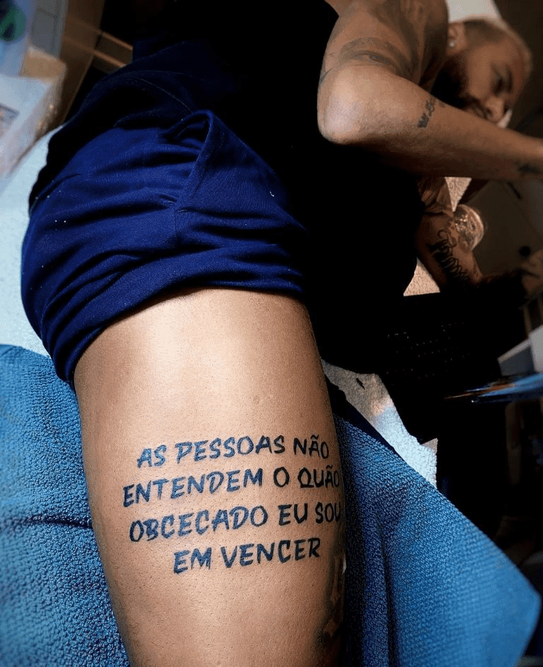 After losing the 2019-20 Champions League final against Bayern Munich, Neymar suffered one of the hardest defeats of his career, so he decided to tattoo a famous phrase from Kobe Bryant to motivate himself every time he suffered a sporting failure. During an interview in 2013, Kobe reflected the Black Mamba mentality with a clear and forceful phrase: "People do not understand how obsessed I am to win". These words identified Neymar, who did not hesitate twice and tattooed them on his right leg in Portuguese.