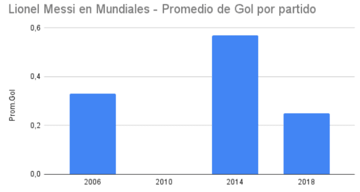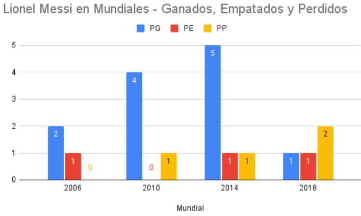 This graph shows how Argentina's performance progressed from 2006 onwards with the presence of the star, but the Russia 2018 World Cup did not meet expectations and they were knocked out in the round of 16 by the powerful and last world champion France with the help of his current teammate, Mbappé.