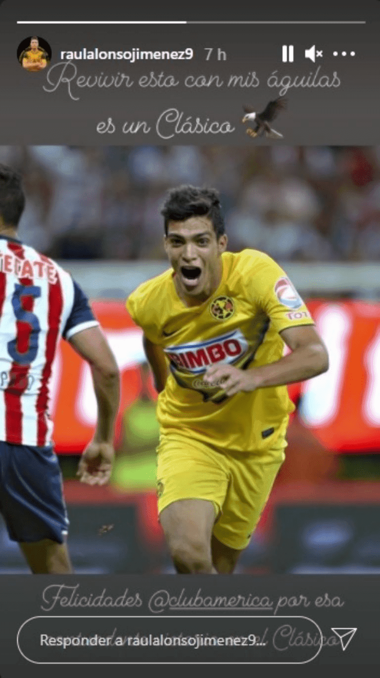 And many miles away, the Azulcrema team had a very particular fan: Raúl Jimenez. The forward who plays in Wolverhampton not only played in America, but is also a fan, so he didn't care about the time difference with England and followed the National Classic at his home.