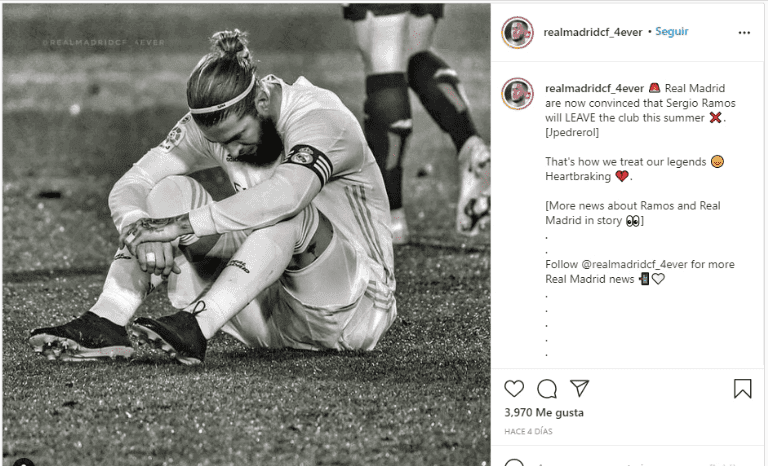 With just four months left for him to leave for free, the four times Champions League winner sent an indirect message on Instagram. Sergio Ramos liked a post that criticized the club for the attitude they had with him offering a renewal out of time. The post made by the user @realmadridcf_4ver questioned the treatment given to idols.