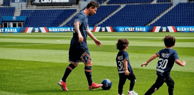 At the age of 9, Thiago's having his first training sessions and games in the lower ranks of Paris Saint Germain. It's Lionel himself who takes him to most of the practices and accompanies him to the games as long as they do not coincide with one that he has to play with the first team.