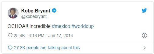 And it was during the 2014 World Cup that Kobe was impressed by a Mexican player, during El Tri match against Brazil, after Guillermo Ochoa stopped every single shoot that Brazil tried to keep a clean sheet against the home team.