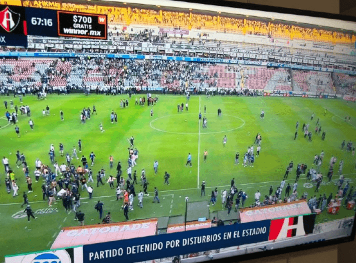 "Inadmissible and regrettable violence in the stadium la Corregidora de Querétaro. Those responsible for the lack of security at the stadium will be punished in an exemplary manner. The safety of our players and fans is a priority! We will continue to keep you informed.