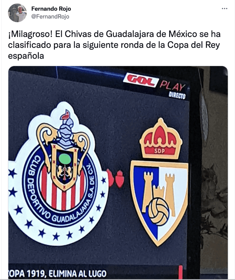 The reality is that Chivas has not participated and will not participate in the Copa del Rey in 2023. What happened was a confusion on the part of the television station GOLTV when presenting the results of the competition due to a mix-up in the logo of a team with the same name as Chivas.