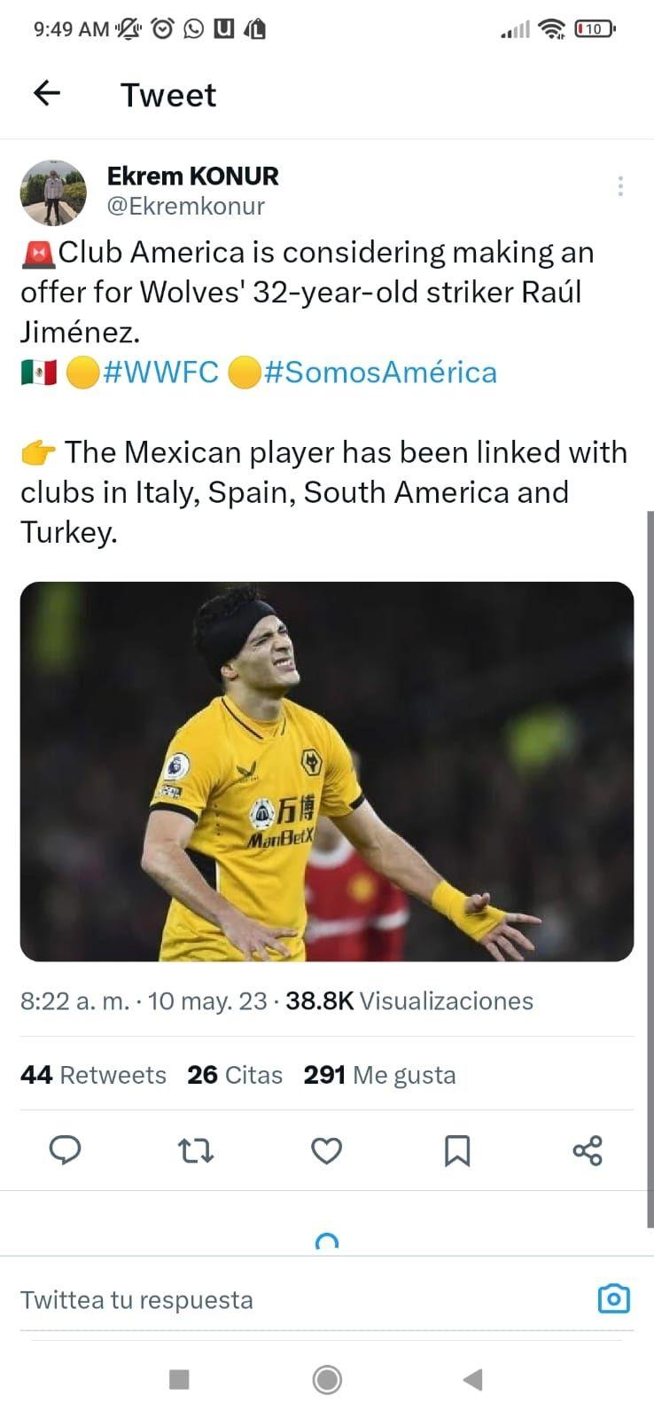 Now the Turkish journalist Ekrem Konur reported that Club América is looking to hire Raúl Jiménez but clubs from Spain, Turkey and South America are interested in making Wolverhampton an offer to buy him.
