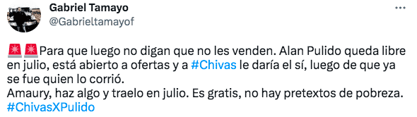 The journalist Gabriel Tamayo reported that striker Alan Pulido is interested in returning to Chivas and the board will have to hire him to replace José Juan Macías.