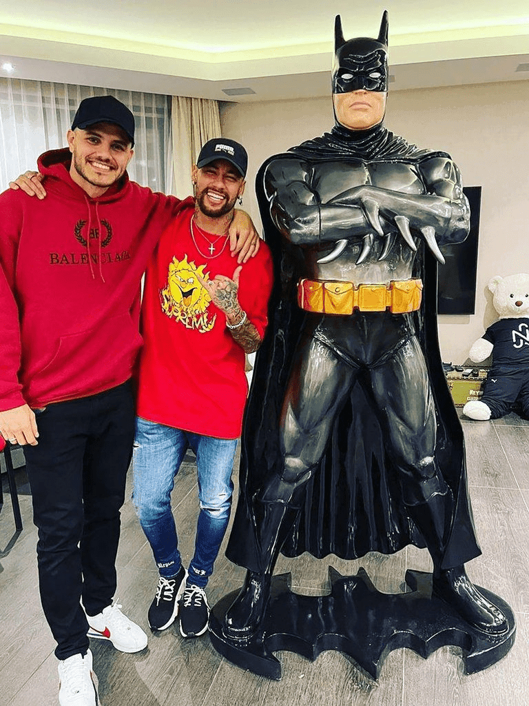 s always, Neymar likes celebrating and living nice moments. He has received an incredibly bizarre gift from his team-mate Icardi, and his wife Wanda Nara. They bought a giant Batman statue, in the character’s alleged real size. It is known the Brazilian star is a big fan of comics, so the Argentinian couple showed up with a beautiful gift.
