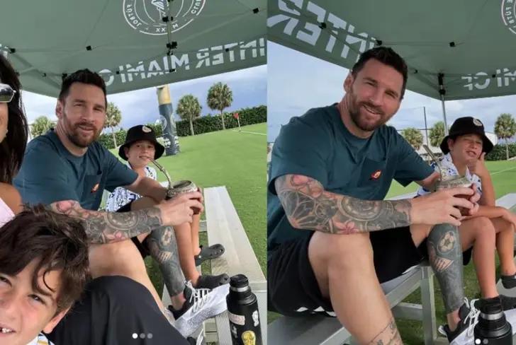Through her Instagram stories, Antonela Roccuzzo revealed how the Messi family spent a relaxed Sunday morning cheering on their eldest son, Thiago, during one of his football matches. In two touching photos, Antonela perfectly captured this special day. In one image, Thiago is seen proudly wearing the number 10 jersey, while in the other, Lionel Messi is enjoying a mate with Antonela and their younger children, Ciro and Mateo.