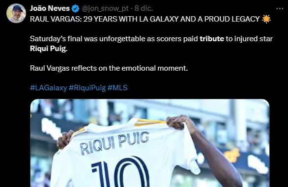 On December 7, 2024, LA Galaxy secured their sixth MLS title. One of the most emotional moments of the final was the tribute to Riqui Puig, who suffered a severe ACL injury in the semifinals. During the celebration, club legend Landon Donovan lifted the trophy wearing a jersey with Puig's name, and Ghanaian player Paintsil dedicated a goal to him by displaying another jersey with Puig’s name. These gestures reflected the respect and admiration for Puig from his teammates and fans.