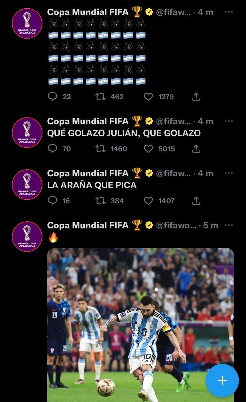 The FIFA account in Spanish on Twitter seemed like an account of some Argentine fan, as it celebrated every goal by Messi and Julian Alvarez. In addition, in the preview of the game they tweeted as saying "Let's go Argentina" or "Today is the day, with the Argentine flag." It goes without saying that they have never done that with France and with Mbappe.