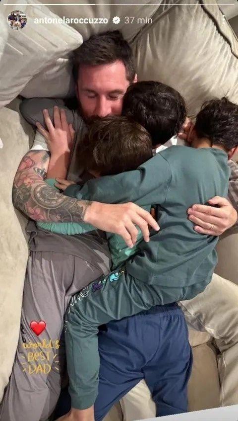 After the stumble suffered by the painting directed by Christophe Galtier, Antonela Roccuzzo supported her husband. Through an Instagram story, the model and businesswoman shared a photo of the best player in history with her three children, Thiago, Matteo and Ciro.