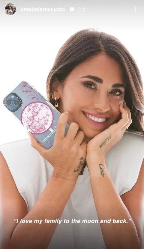 It is a limited edition collection with Casefity, a brand that makes high quality cell phone cases. As the ad says, the products that bear Antonela's stamp "celebrate motherhood, inspired by her favorite phrases as the mother of three children."
