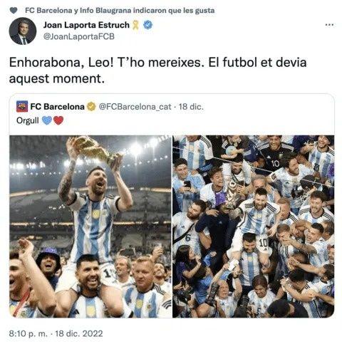 After lifting the trophy, countless personalities congratulated Leo. Joan Laporta, president of the culé team, was also part of the group that was present amid the joy of the 'Flea'. However, on social networks they recalled the betrayal of '10', since he broke off the negotiations for his renewal and forced Messi to sign for PSG.