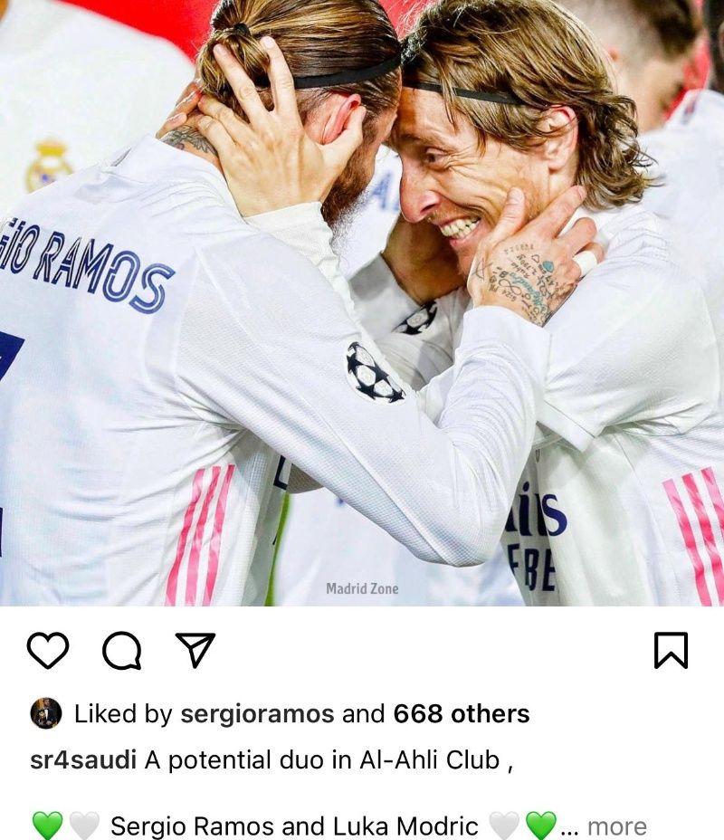 Sergio Ramos liked an Instagram post that said: “A potential duo in Al-Ahli Club”, with a picture of Sergio Ramos and Luka Modric together. Sergio Ramos would have already talked with Luka about the possibility of making the decision to leave Europe and put an end to his legendary careers.