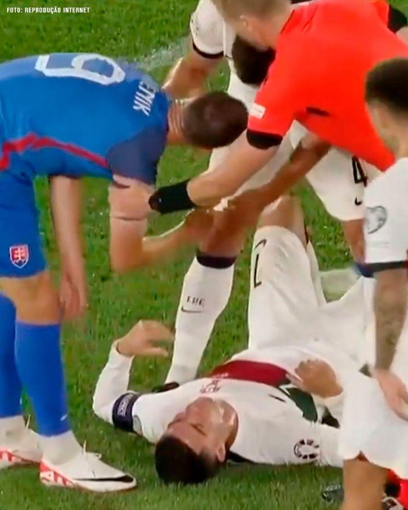 A few minutes before the match ended, exactly in the 91st minute, Cristiano has received a shocking impact in his face, he fell down to the ground and the medical assistants ran to te pitch to helped him.