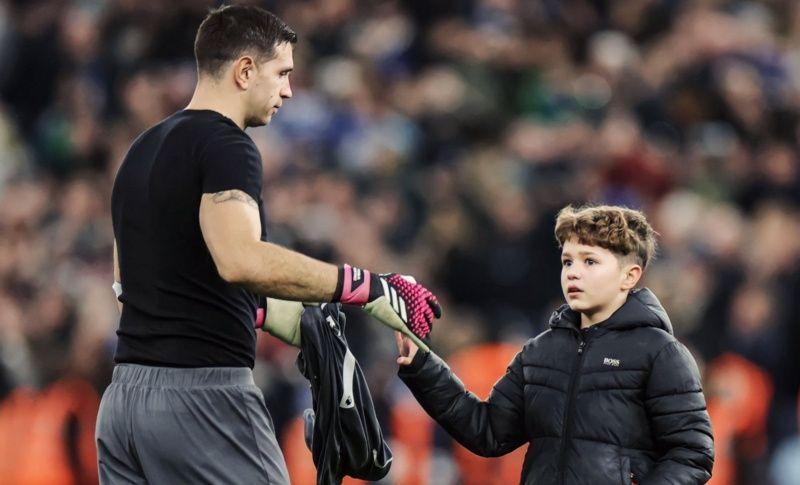 The player, despite the defeat of his team, saw how a child who was an Aston Villa fan showed a poster where he asked the Argentine goalkeeper for the shirt. Martinez, despite being obviously annoyed by the result, decided to put the young man on the field, give him his shirt and take a picture with him.