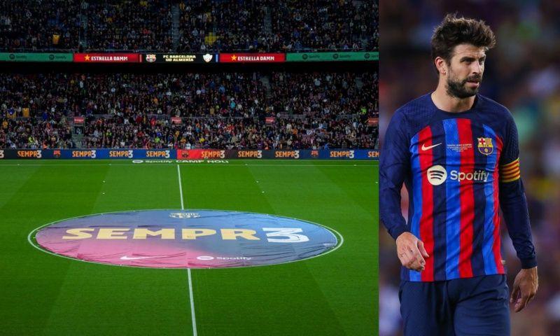 The fans of the culé team displayed a mosaic dedicated to Gerard Pique with the message "Thank you very much" and also in the center of the field a message that said "Sempr3" referring to the fact that the defender will always be remembered in the history of the club and by the fans of the culé team.