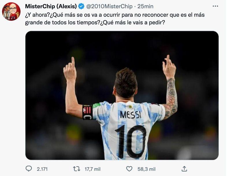 In that sense, now, Mister Chip, a famous ESPN journalist, who has always leaned towards Cristiano Ronaldo, has already established himself as one of Messi's biggest fans after this World Cup and recognizes the Argentinean as the best player in the history of soccer.