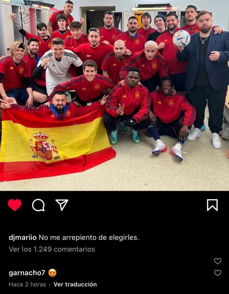Spain and France staged a duel of influencers that captured the attention of thousands of people. The "Red" got a defeat, and on Instagram they uploaded a photo despite what happened. Garnacho, who was born on European soil, did not hesitate to comment on the post and the young player's reaction immediately went viral.