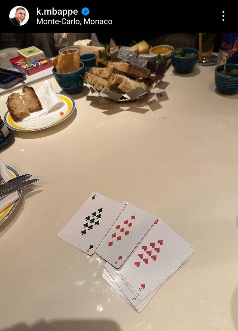 Why is it a message for Madrid fans? It is an open secret that Mbappé wants to play for Real Madrid, either this season or the next. The only number that remains available at Real Madrid is number 9, and now Kylian Mbappé uploads a photo with 3 poker cards of number 9... fans don't believe in coincidences.