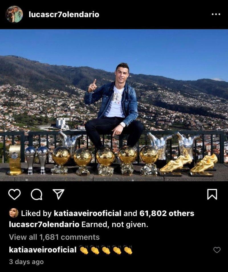 After Cristiano's interaction with the journalist who criticized Messi, the one who joined the controversy was Katia Aveiro, sister of the Al-Nassr forward. A Cristiano Ronaldo fan Instagram account posted a photo of the Portuguese with his individual awards and added: “Earned, not given.” The striker's sister not only liked it but also commented with emoticons that endorsed the publication.