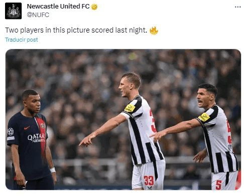 The English club shared a photograph on their social networks in which Dan Burn, Fabian Schar and Kylian Mbappé appear. The description read: "Two players in this image scored last night", a clear allusion to Mbappé's poor performance during the match.